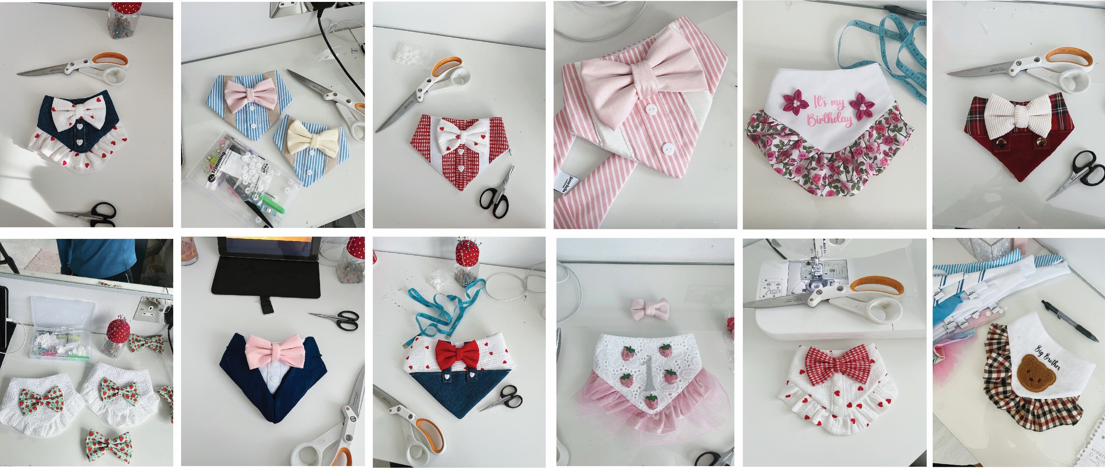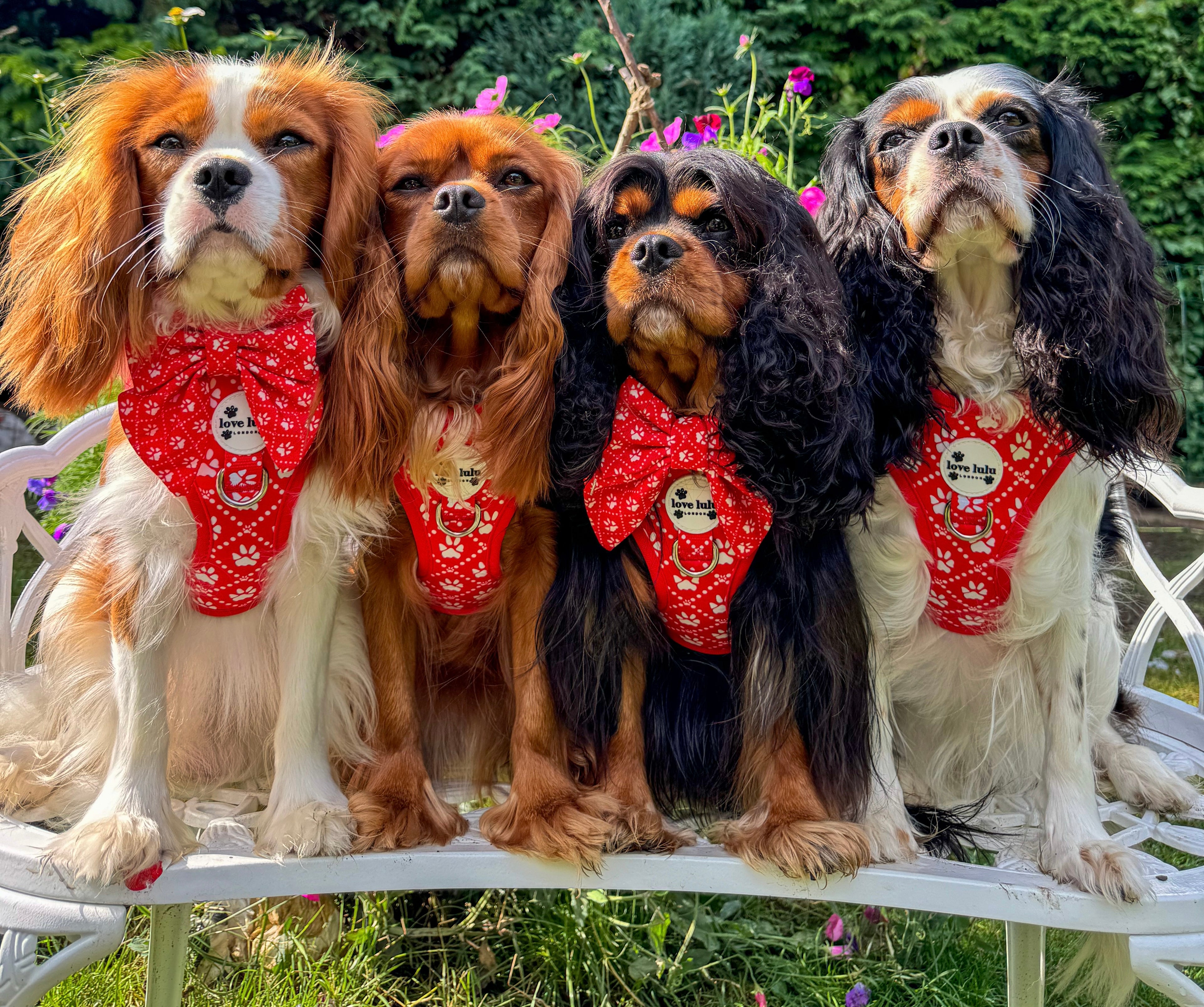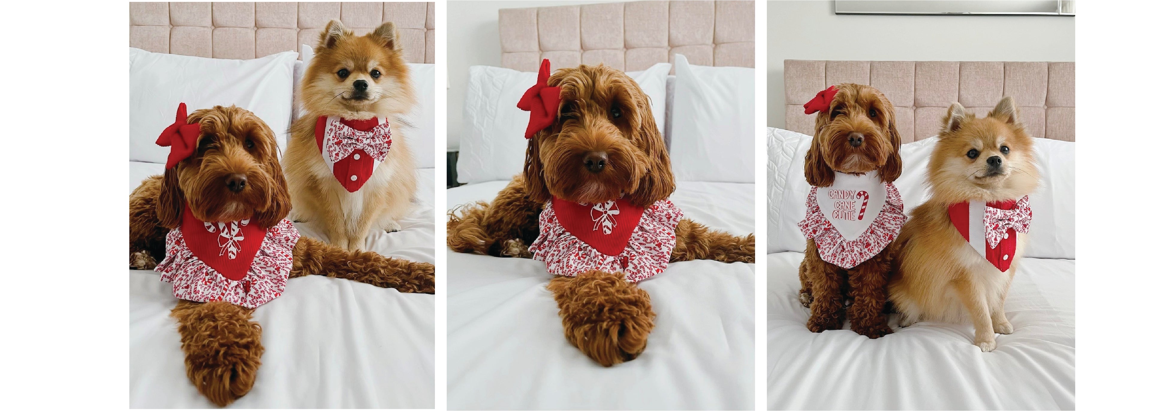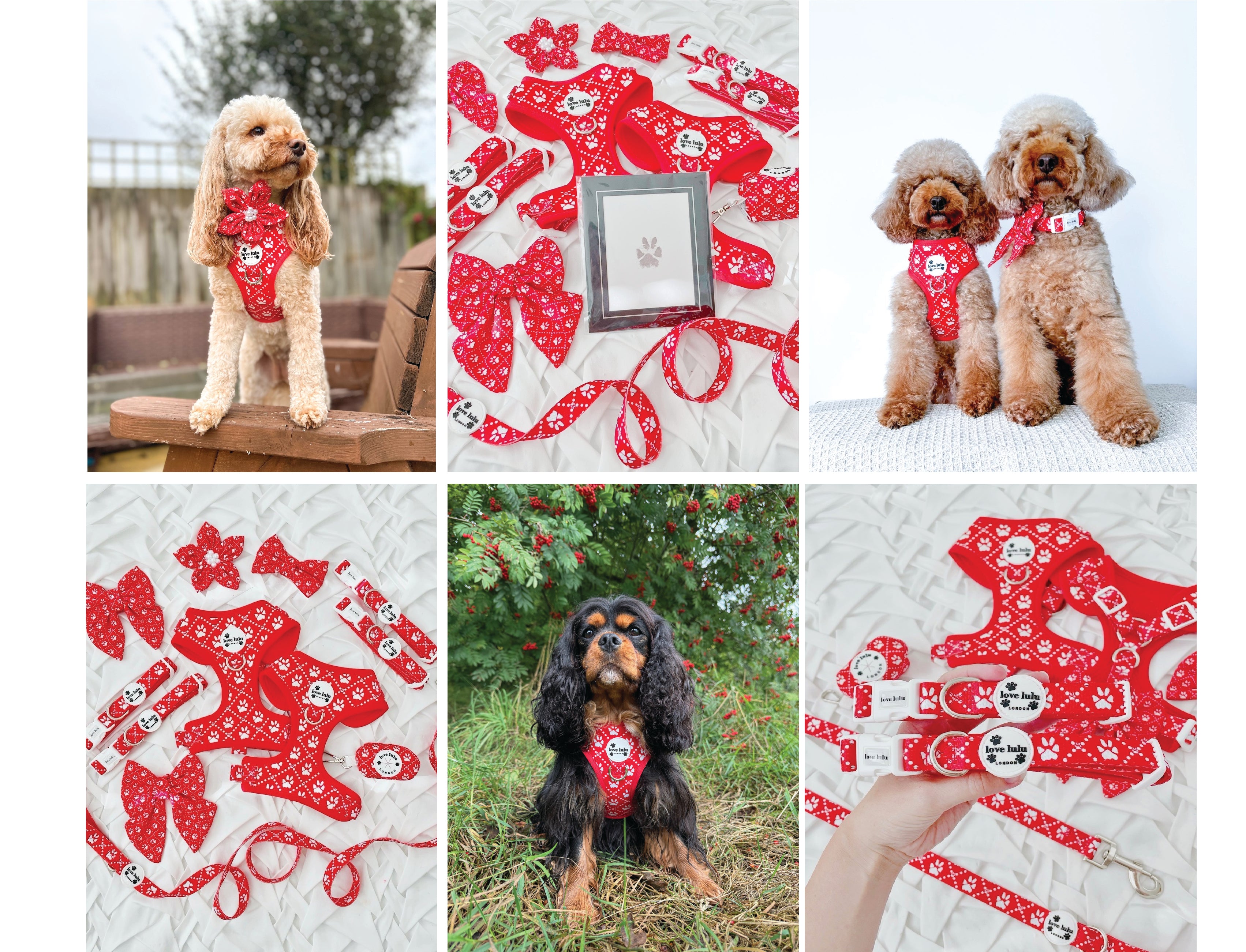 Each design includes unique features such as patterns designed and drawn by Nicole, reversible bandanas, handmade flower bows perfect for your dogs collar; all of which they will make your dog look super adorable!