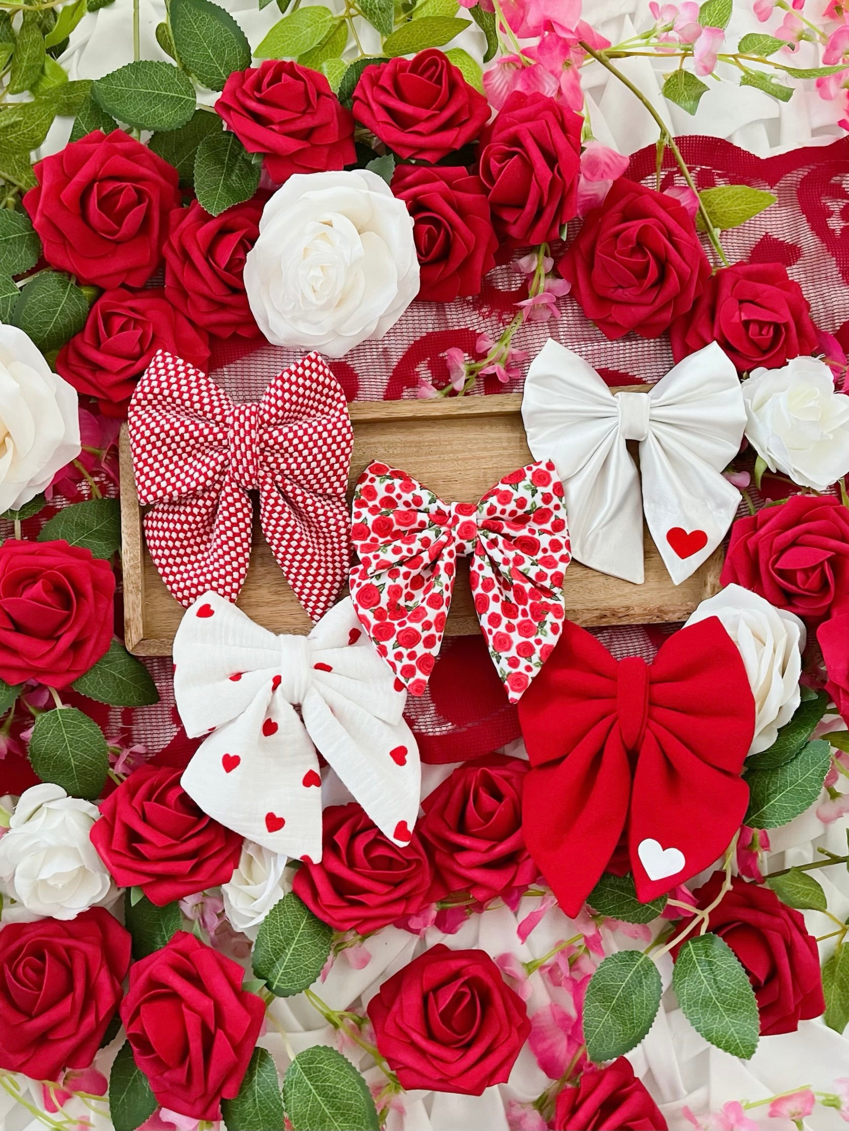 Falling in Love - Red and White Check Pattern Bow