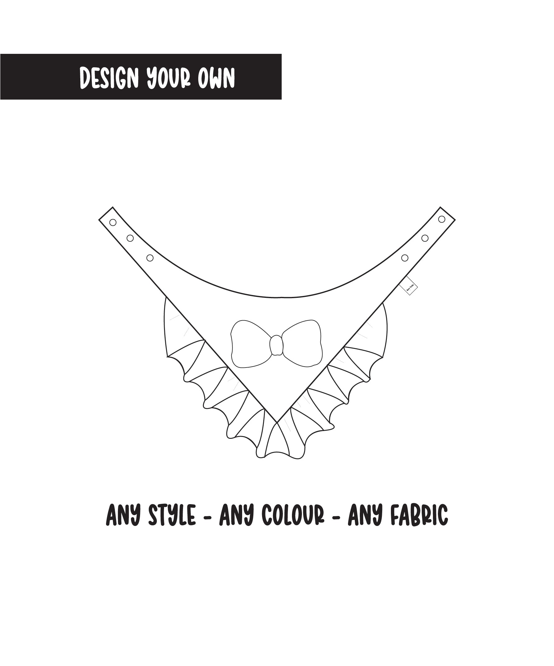 Design your own bandana: Choose your base fabric, bow pattern/colour and ruffle colour. Get in touch and we will help you design! Please either contact us via DM on instagram, contact form or email!