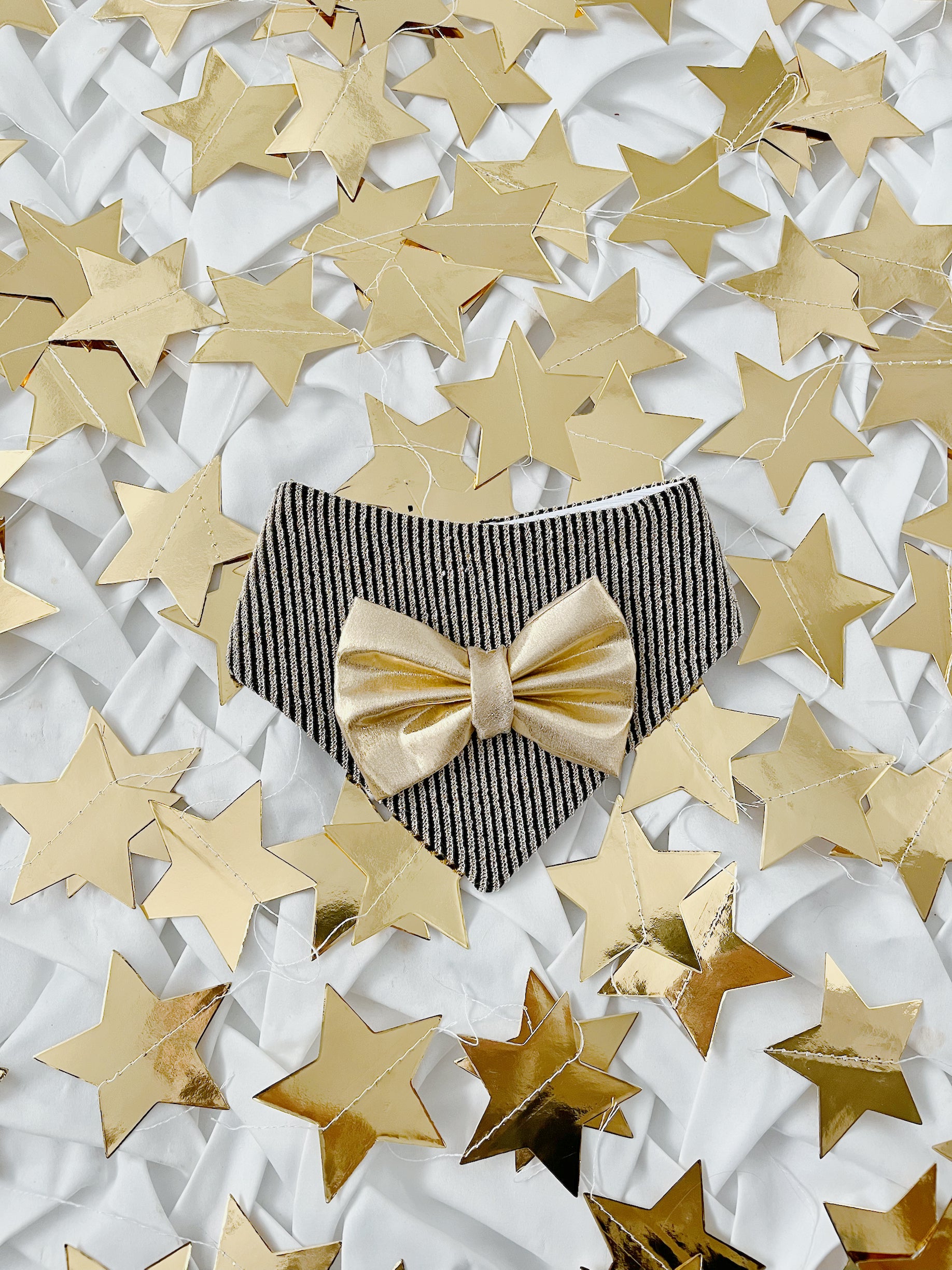 New Year - Gold Knit Stripe Gold Bow Bandana